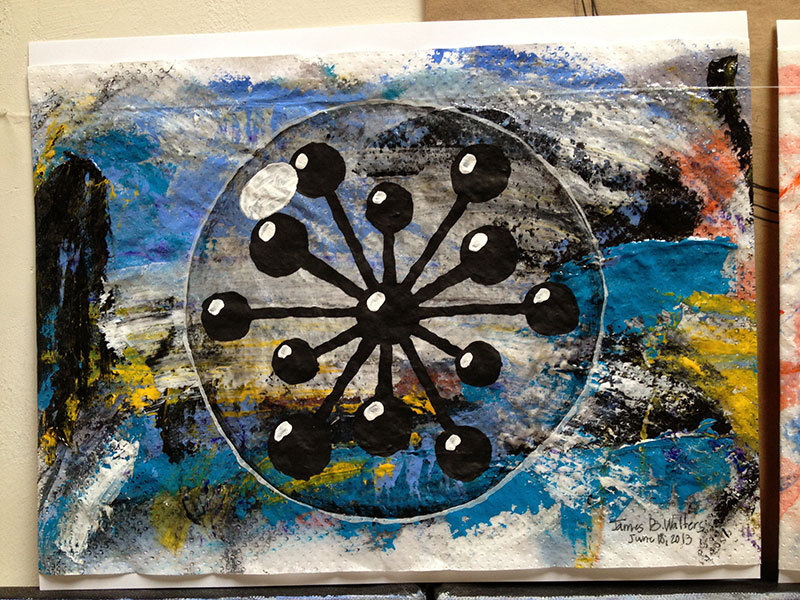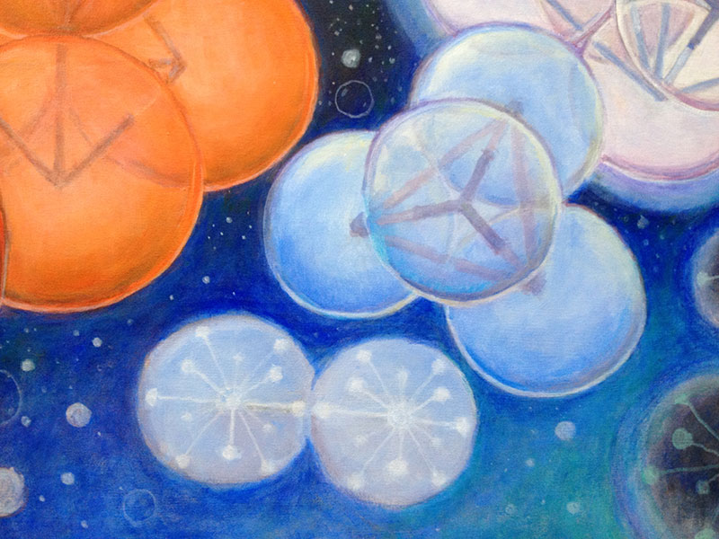 I thought I would be a writing a proposal but my notes turned into scribbles and my scribbles soon turned into paintings. I paused and decided to encouraged my intuition to direct my activities without hindrance or restraint. The first acrylic painting on canvas..."Bubble Universe"... took me back to the BIG BANG! It was necessary to illustrate that SYNERGETICS Geometry demonstrates a Primordial Intelligence that permeates ALL SPACE and TIME!