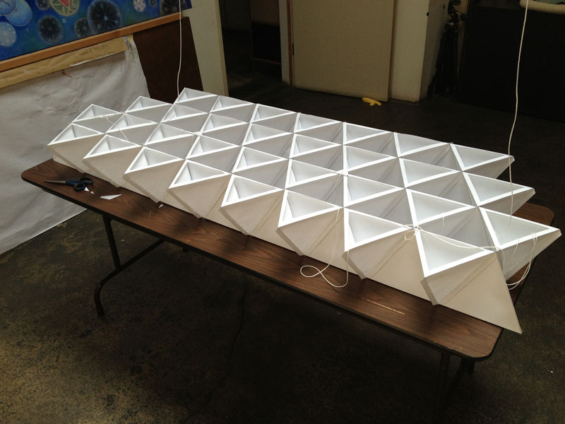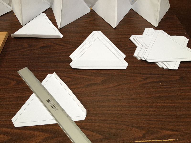 I decided to create a version of Bucky's OCTET TRUSS that he made out of panels, instead of struts. To keep it simple and to create a nice diffuse light I made it with regular 8 1/2" x 11" copy paper.