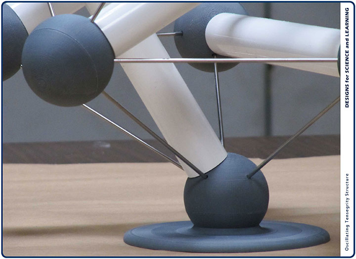 I had an interest in designing a tensegrity structure and, as with any of my design projects, the interest lies in uncovering the mysteries found in the connections. I used the icosahedron tensegrity configuration to explore a few concepts that intrigued me. I selected this configuration because all the nodes, compression tubes and tension rods are the same.