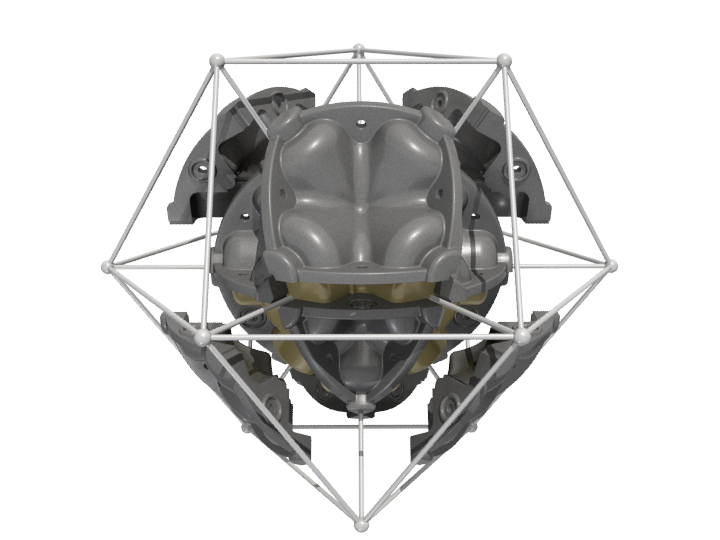The result is the ENERGY NODE, a light weight, rigid polyurethane foam casting. The configuration of the node is based on the 60 degree angular relationships best described by Buckminster Fuller's Isotropic Vector Matrix.