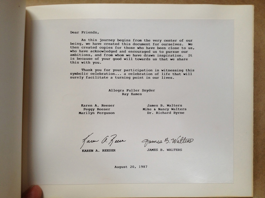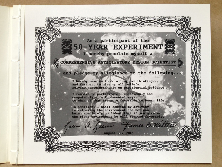 Photos of the 50 Year Experiment document that Karen and I conceived, photo printed, hand-bound and distributed back in August 20, 1987.