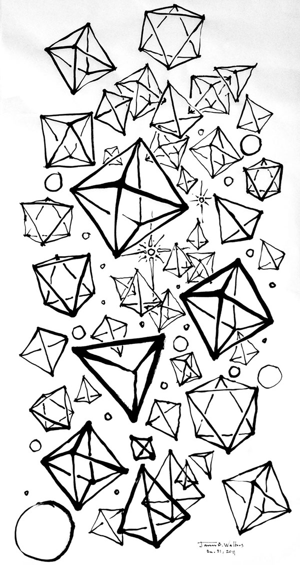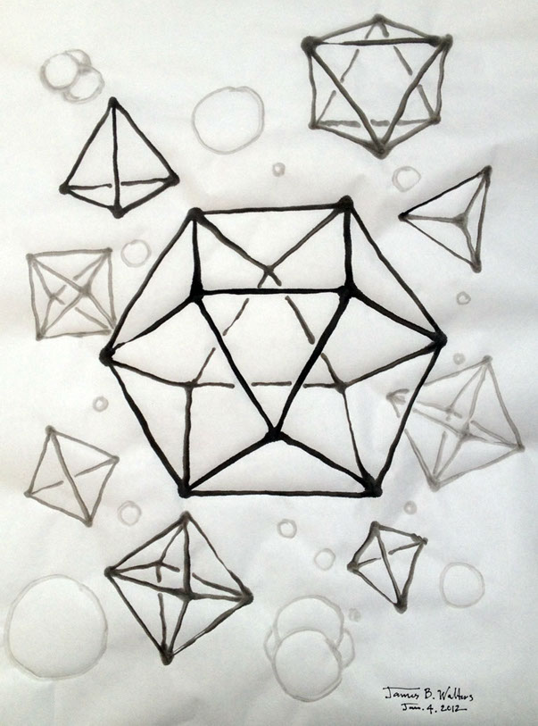 Having a desire to follow along and inspired by Bucky’s own hand-drawn illustrations, in 1985 I began drawing the easily recognizable tetrahedron and octahedron.