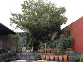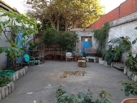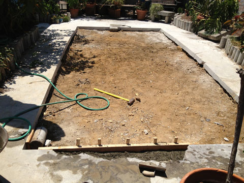 After the tree was cut down I felt that building the Energy Node structure in the garden would be a nice homage to the tree. We asked the Landlord if he could resolve the 2 foot high bulge in the concrete that spans edge to edge. After 6 months consideration... THIS is what he came up with... and it's been like this for the last 6 month.