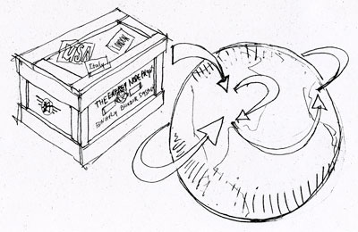 More DRAWING... at the top of the page is an idea for way to enter the site... you tear it open revealing Inner SPACE!!