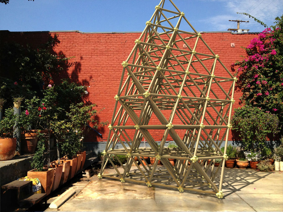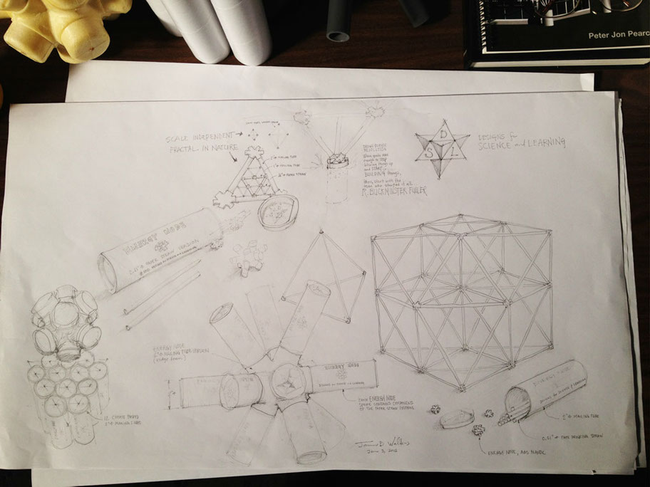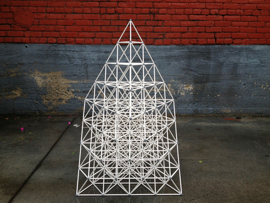 This building system is fractal in nature, it’s size independent and scale independent. That means you can build a 12” structure with 1/4” diameter paper straws and it will look and perform structurally the same as a 10’ structure made with 2” diameter mailing tubes.