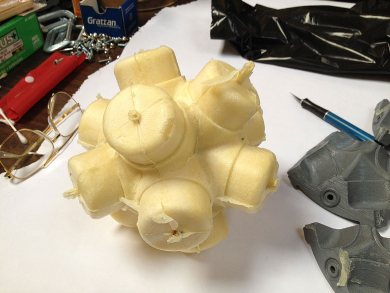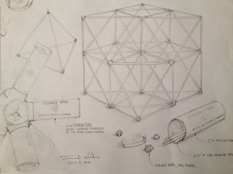 The paper straw version of the ENERGY NODE made with the Dimension 3D Printer, an ABS plastic fused deposition modeler.