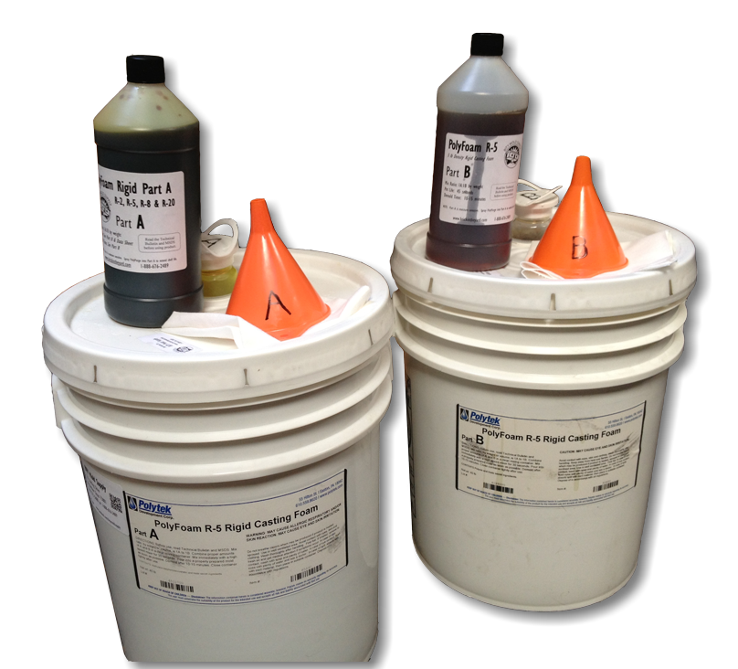 The polyurethane rigid foam sets up in 15 minutes! The reaction generates heat and the expanding foam is incredibly sticky until it cures.
