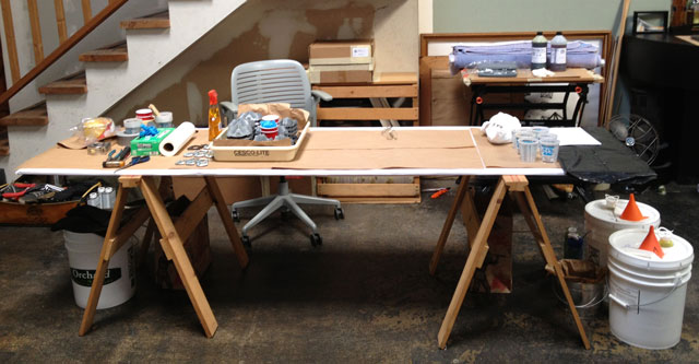This was a learning experience, so I started by setting up a workspace that has all the required tools and materials available and within arms reach... it also had to be accessible for documenting the casting process.