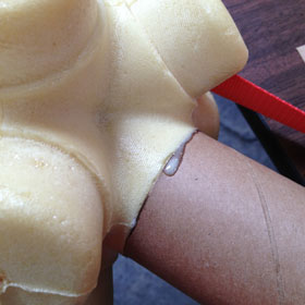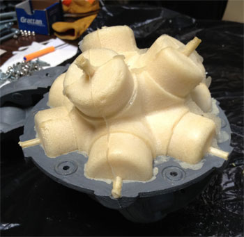 Foam casting in half of the mold. The spikes and flashing are easily removed.