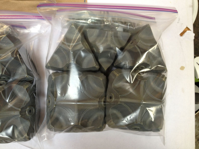 The mold parts group nicely and the whole set, including hardware and clamps, fits into a zip-lock baggy.
