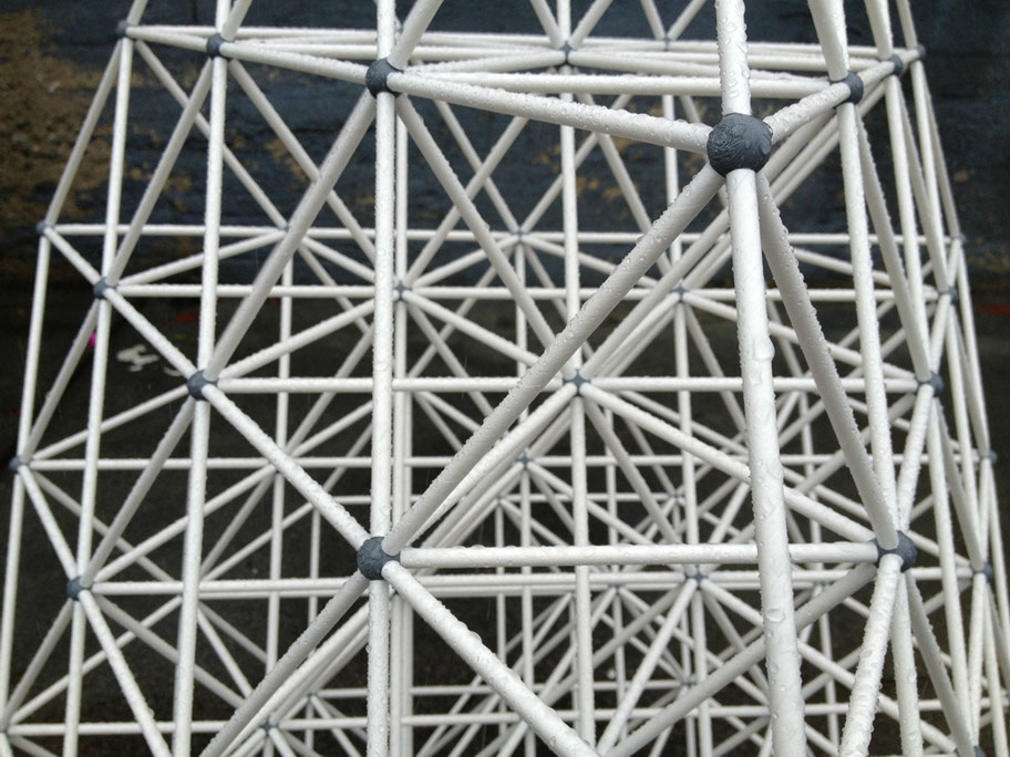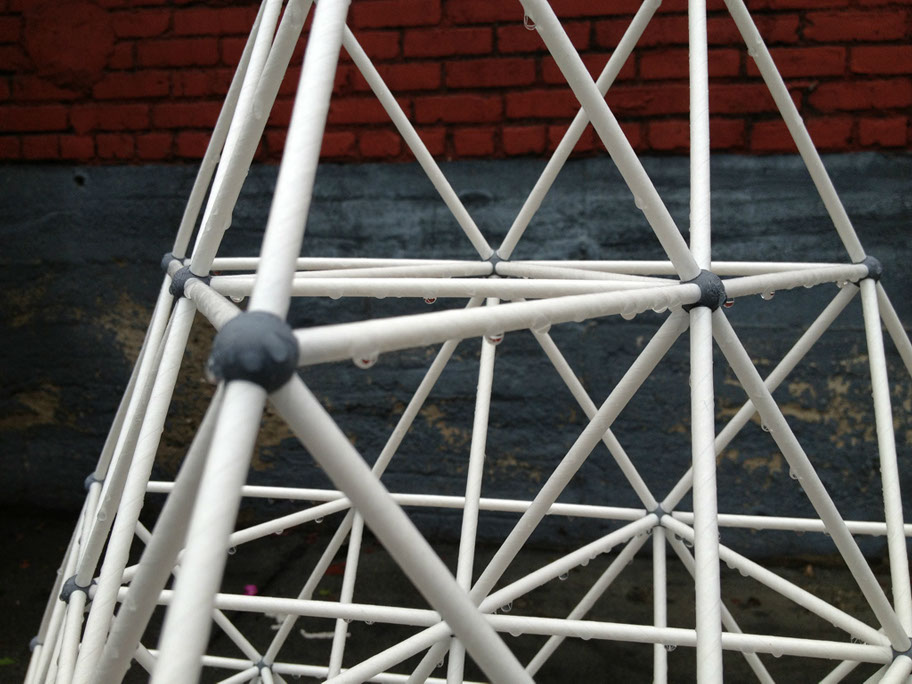 The paper straw scale model with the 3d printed nodes allows me to stage the sub-assemblies for construction... even rehearse if necessary. I plan on documenting this process with stop motion animation and compare it to the actual construction process. So this scale model will be getting a lot of use during the construction of The ENERGY NODE Project..