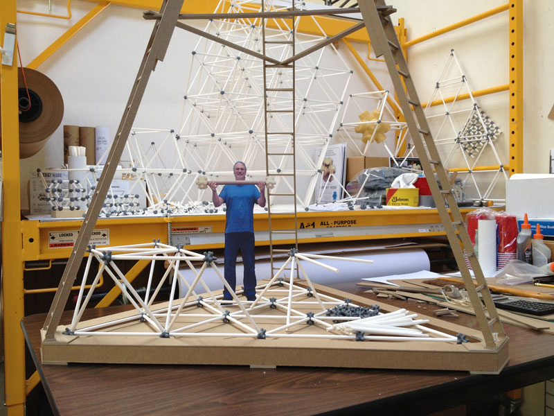 As a Design Engineer, I have over twenty five years experience designing, detailing and constructing spaceframe structures. The structures I’ve worked on ranged in size from playground structures to structures that cover entire baseball stadiums. I have also constructed spaceframes from a variety of materials including aluminum, steel, plastic and wood.