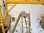 Getting to the top of the structure was looking a little changeling so I devised a temporary tripod structure with three 20' tall aluminum extension ladders. After construction the ladders will be removed.