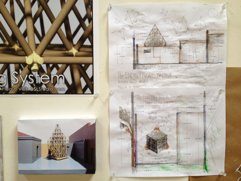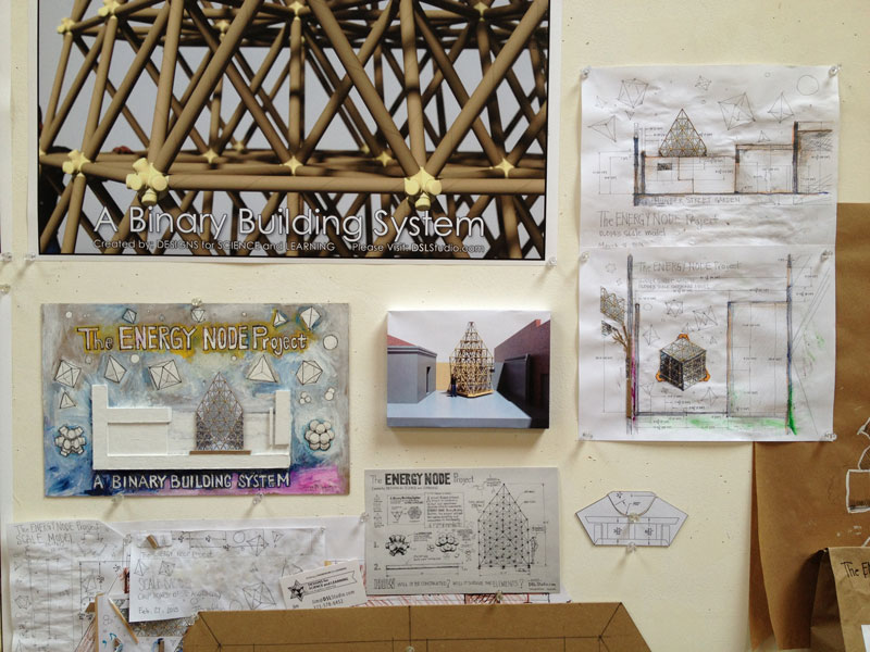 Building the first 20' tall structure with the experimental ENERGY NODE Binary Building System is an opportunity to closely observe and document the construction process, and to monitor it's performance over the 12 week exercise. Our courtyard is going through some renovations now...